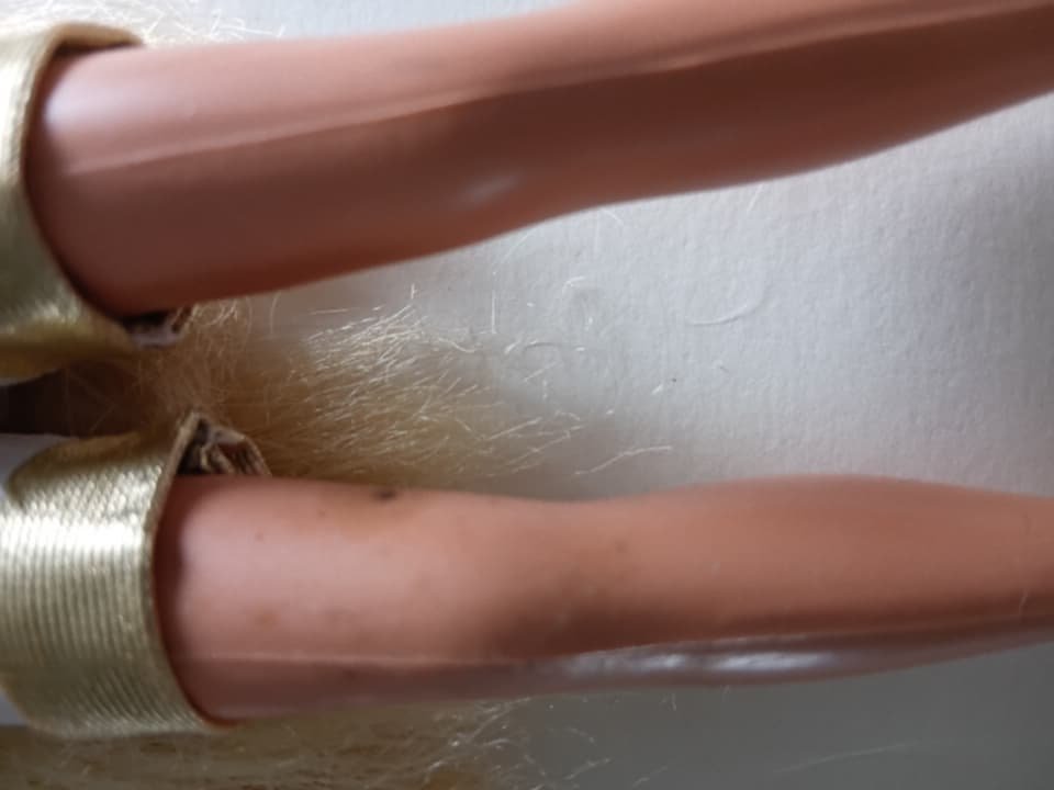 Some accessories missing, she doesn’t have her shoes. Barbie’s hair is a bit tangled and doesn’t have original scrunchie, will need some gentle brushing.